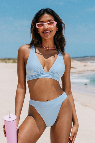 Bikini bleu fronc¨¦ ¨¤ nouer dans le dos