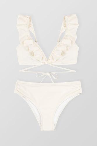 Bikini blanc ¨¤ volants et emballage sur le c?t¨¦ taille moyenne