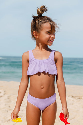 Bikini floral ¨¤ volants couleur unie