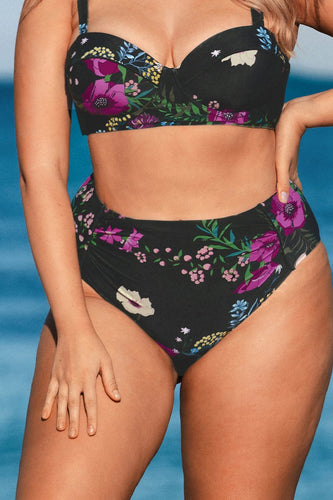 Bas de Bikini grande taille imprim¨¦ floral noir