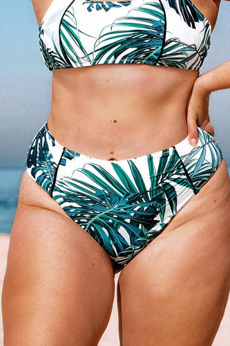 Bas de bikini grande taille imprim¨¦ plantes tropicales