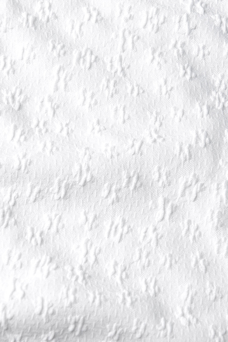 Attrapez un bronzage lors de vos prochaines vacances dans ce bikini comprenant une bralette avec un motif jacquard marguerite, un col d¨¦gag¨¦, une d¨¦coupe sur le devant et des bretelles ajustables qui m¨¨nent ¨¤ un dos ¨¤ nouer entrecrois¨¦, ainsi qu'une paire de bas cheeky assortis avec une taille haute et devant en V et une coupe de jambe haute cheeky.
