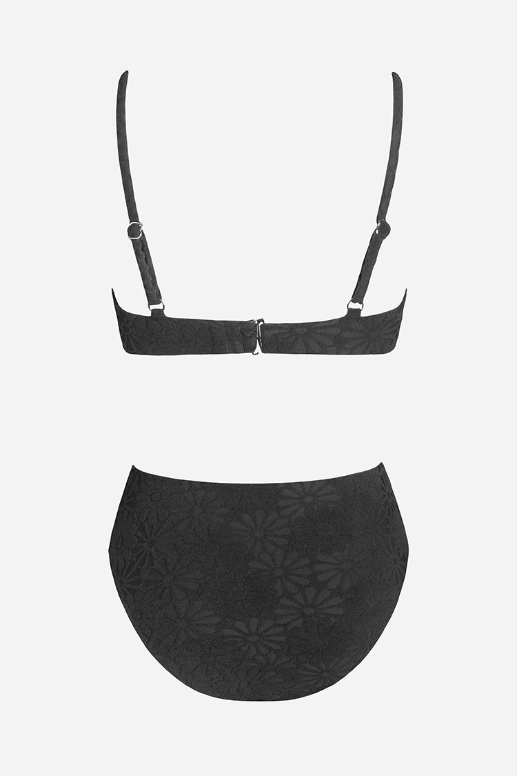 Nous obtenons des vibrations romantiques majeures de ce bikini fabriqu¨¦ ¨¤ partir d'un mat¨¦riau floral textur¨¦ et comprenant une bralette avec un anneau en forme de c?ur sur le devant, un col en V, une d¨¦coupe et des bretelles ajustables, ainsi qu'une paire de bas ¨¤ taille moyenne avec une couverture classique.