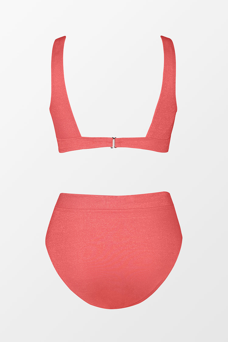 Soyez la star que vous ¨ºtes et brillez dans ce bikini confectionn¨¦ en lurex et compos¨¦ d'une bralette avec un col en V ainsi que d'un bas assorti avec une taille haute et un design torsad¨¦.