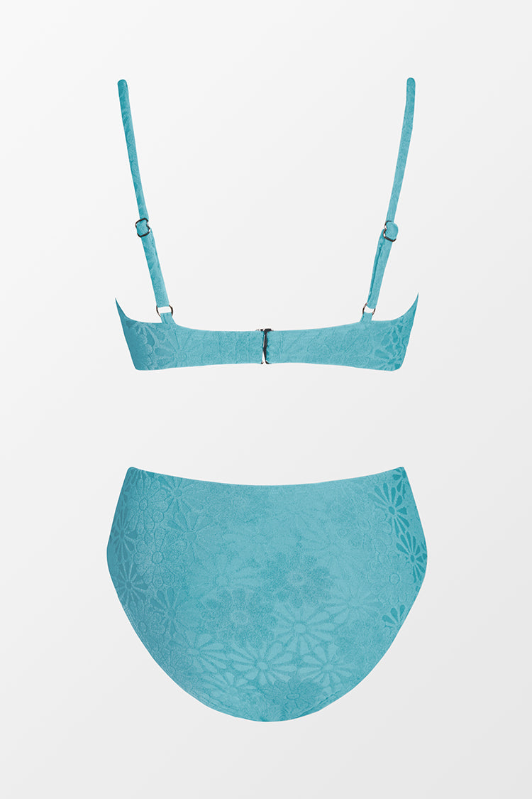 Ayez l'air sexy et chic lors de vos prochaines vacances dans ce bikini fabriqu¨¦ ¨¤ partir d'un mat¨¦riau floral textur¨¦ et comprenant une bralette avec un anneau en forme de c?ur sur le devant, un col en V, une d¨¦coupe et des bretelles ajustables, ainsi qu'une paire de bas ¨¤ taille moyenne avec une couverture classique.